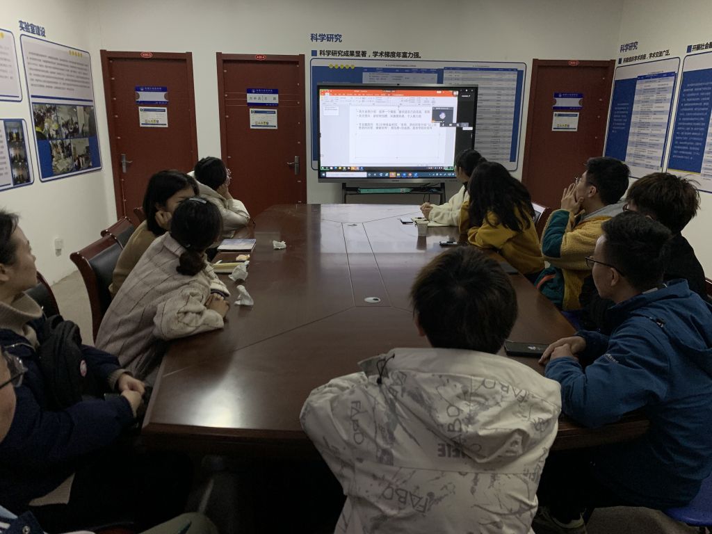 随后,2016级、2017级成功上岸的学长学姐也通过视频会议的方式与在场同学进行经验分享。魏文静和时兆慧向同学们较为细致地讲解了复试前考试科目的准备与考试时的面试技巧;陈诺和王竞钊则以自己的个人经历向同学们介绍了考研调剂的流程和注意事项。同学们认真聆听,积极讨论,纷纷表示收获满满。