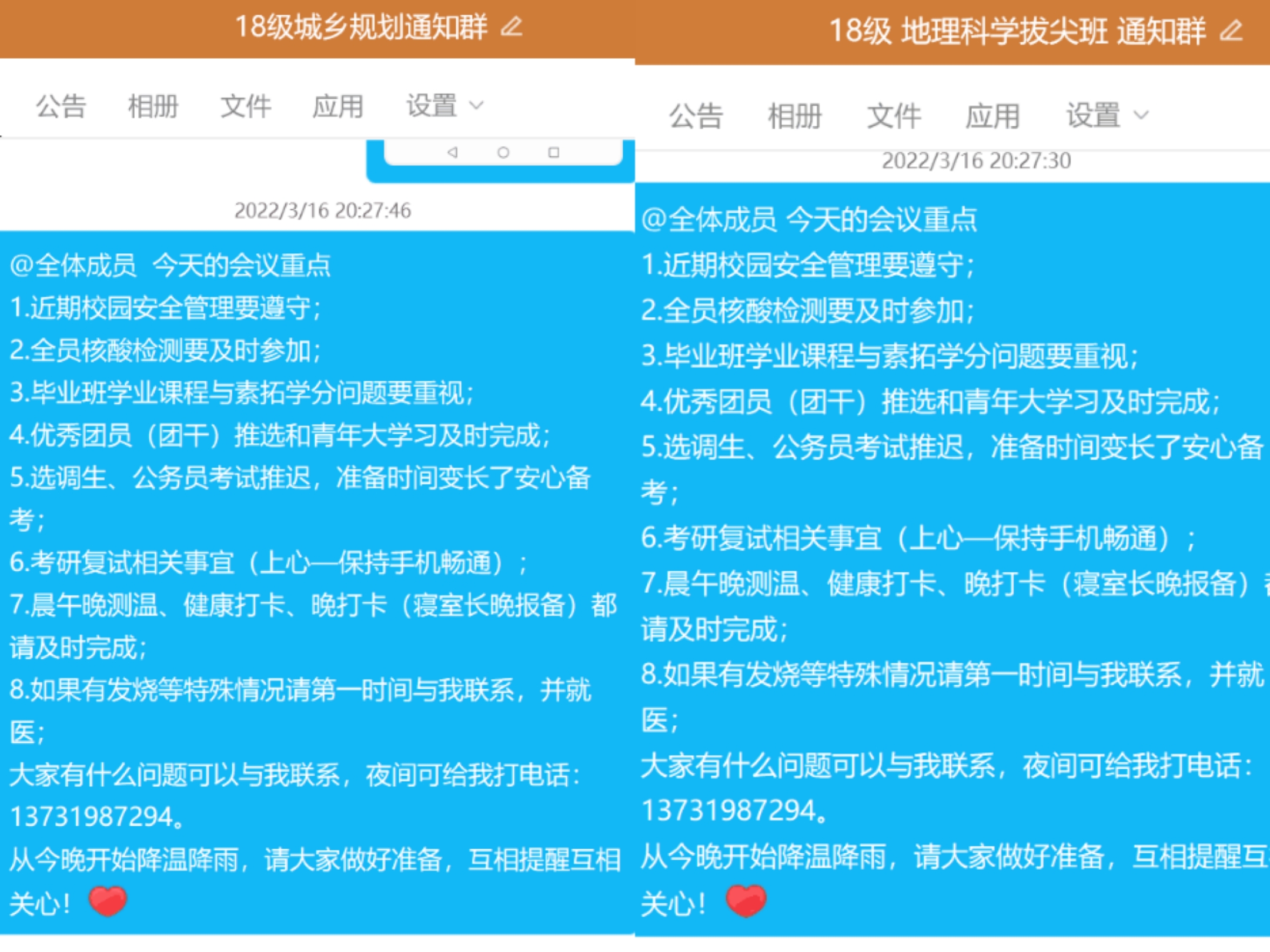 (本网讯 张慧)为稳步推进毕业班学生第八学期管理工作,3月16日晚8点,2018级城乡规划专业及地理科学(非师范)专业于腾讯会议召开云班会。会议由辅导员张慧主持,全体学生参会。