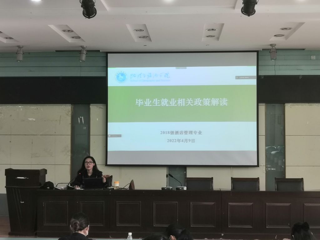 实验楼101报告厅召开“24365大学生就业服务平台”培训指导会暨就业政策解读会。会议由辅导员陈祥云主持,全体在校学生线下参会,校外实习就业学生通过腾讯会议线上参会。
