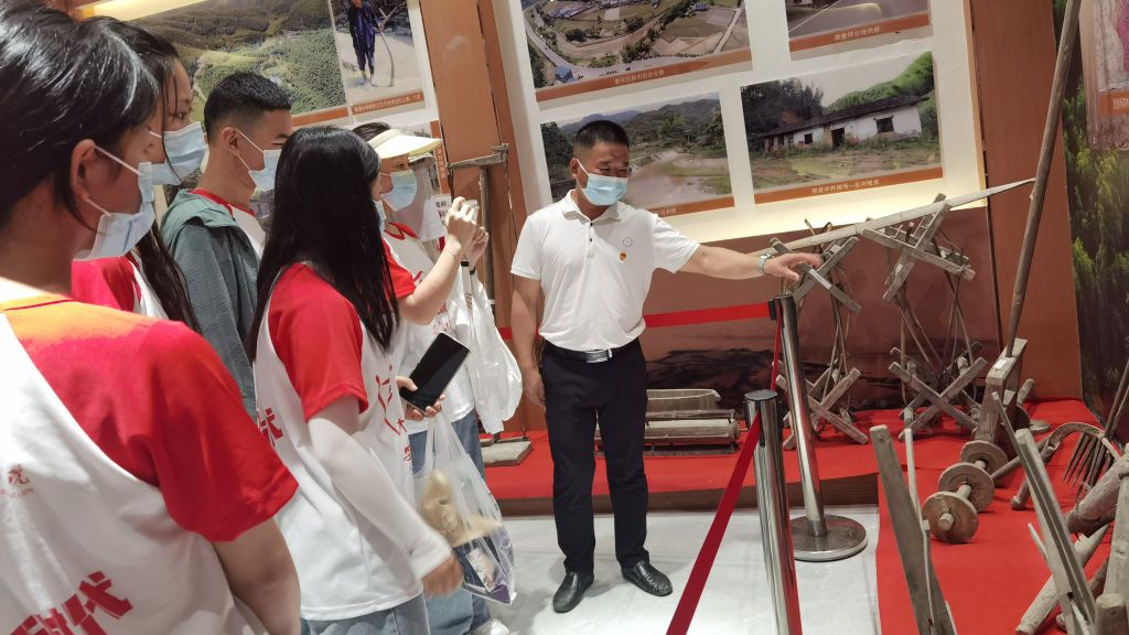 实践团队先后参观了村落整体布局缩影,高山绿茶田景貌,农垦光荣录;学习了当地精湛的传统制茶工艺,工商业尤其是电器的发展历程;感受了农垦人的精神风貌,下乡知青的年代记忆。在万龙山乡农垦记忆馆,一件件斑驳的文物、一张张发黄的照片讲述着一个个艰苦卓绝的奋进故事,团队成员全面了解了万龙山垦殖场从创建到发展壮大的光辉历程,体悟农垦职工们艰苦奋斗、勇于开拓的农垦精神,每到一处,调研人员边听边记、边观摩边交流,对各参观点体现的乡村振兴战略实施成果频频称赞,深入感受“农垦精神”。