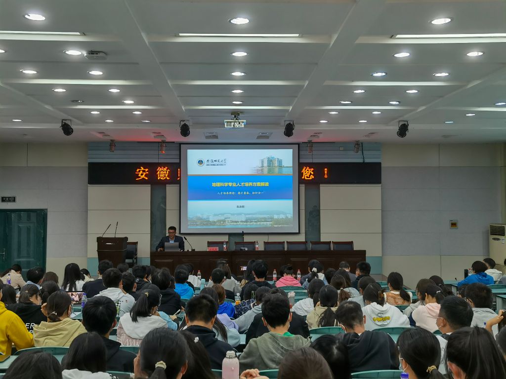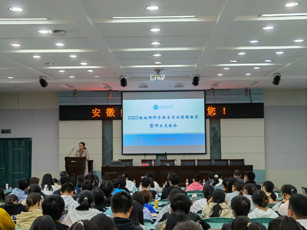在实验楼101举行2022级地理科学新生专业思想教育暨师生见面会。会议由朱永恒教授主持,方凤满院长、全体专业教师和2022级地理科学全体新生参加。