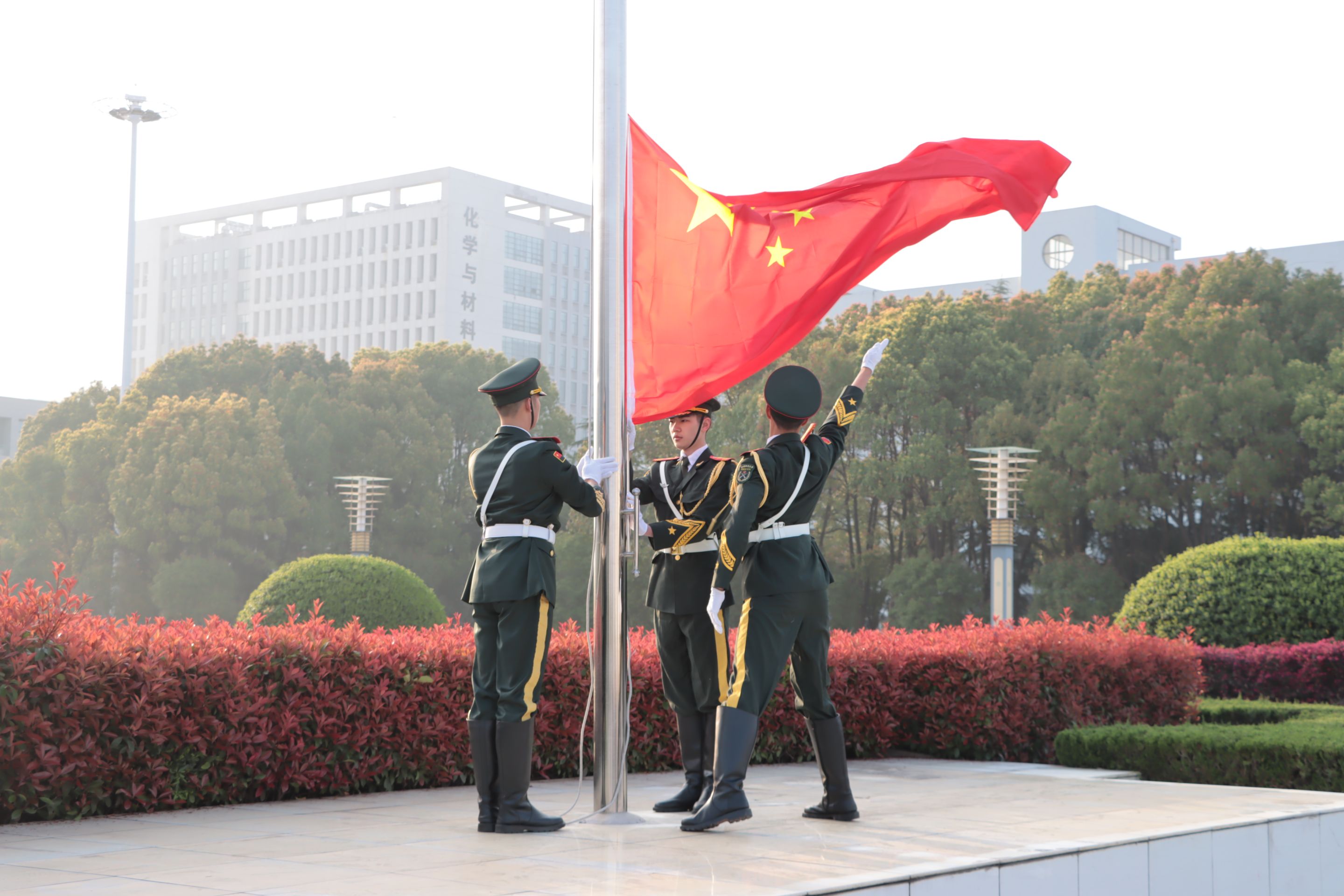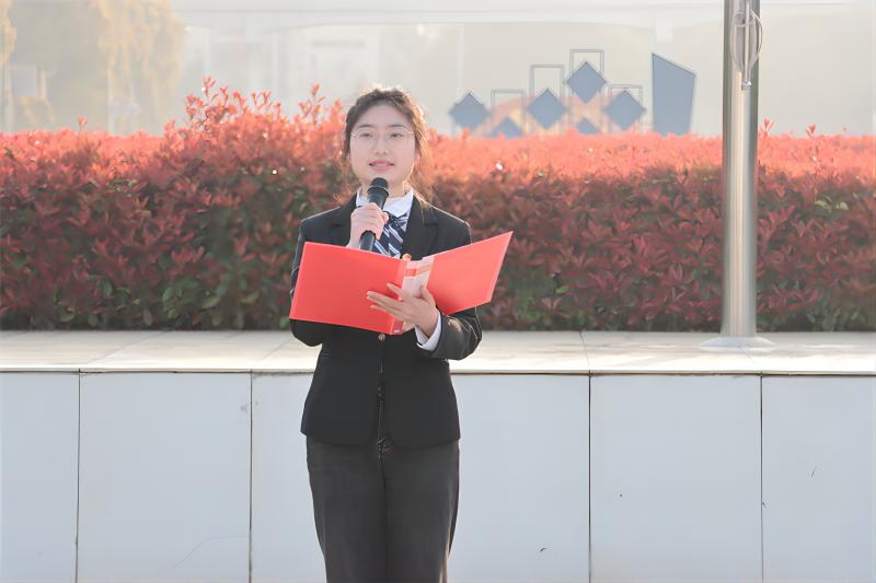 2022级辅导员陈祥云、谢园以及本科生张岳城、陈盈进行国旗下的朗诵——《我心中的中国红》。“我愿仰望星空,以鸿鹄之志许下民族复兴的誓言;我愿脚踏实地,以勤勉实干践行强国有我的决心”,振奋人心的朗诵词回荡在敬文图书馆东广场,激发了同学们的昂扬斗志。