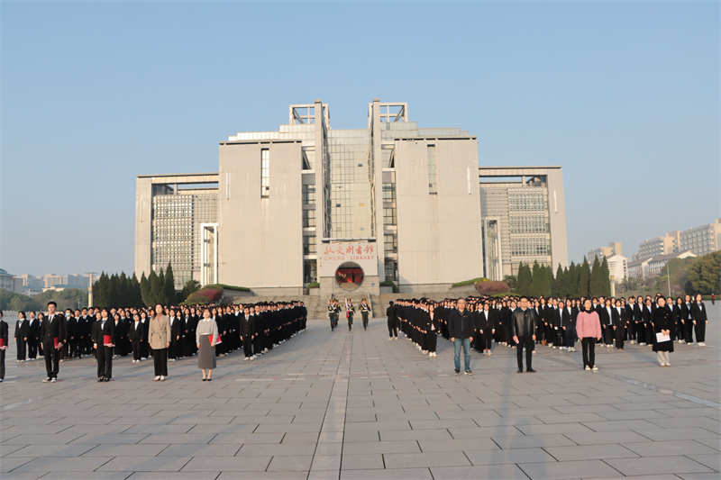 在敬文图书馆东广场举行了“学习二十大、奋进新征程”主题校园升旗仪式。学院党委副书记付勇,全国优秀教师、地理信息科学专业教授麻金继,学院团委副书记韦银艳、吴文涵,2022级新生辅导员陈祥云、谢园以及2022级全体本科生共同参加。活动由2022级新生辅导员操晶晶主持。