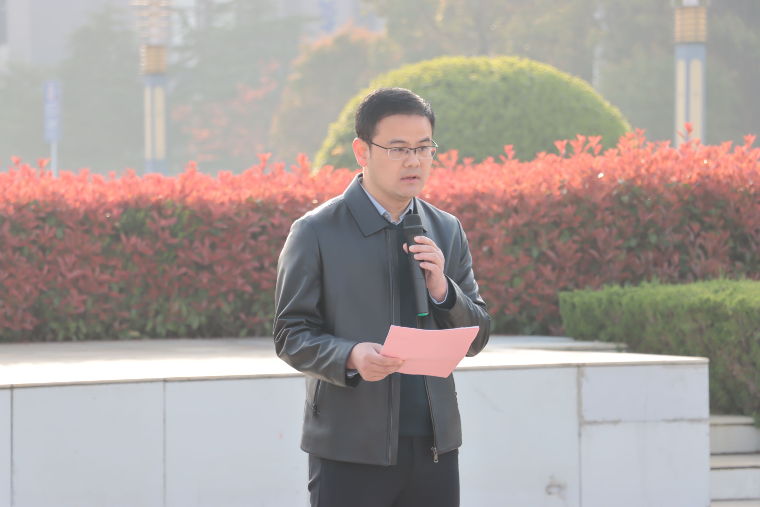 付勇向同学们作国旗下的寄语。他指出,这不仅仅是一次校园升旗活动,更是一次爱国主义教育,他勉励同学们要听党话、跟党走,胸怀忧国忧民之心、爱国爱民之情,不断奉献祖国、奉献人民,以一生的真情投入、一辈子的顽强奋斗来体现爱国主义情怀,让爱国主义的伟大旗帜始终在心中高高飘扬!