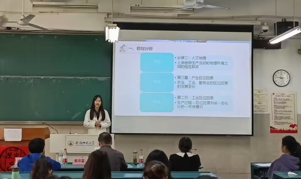 周润/刘雨彤/牛淑婷)为强化师范生教学技能,提高同学们教学水平和实践能力,4月2日下午,21级地理科学(师范)专业携手皖江知行社在行知楼2040102、2040103教室举办第二届“行知杯”师范生教学技能大赛。地理专业教师焦华富、朱永恒、徐仪红等担任评委。