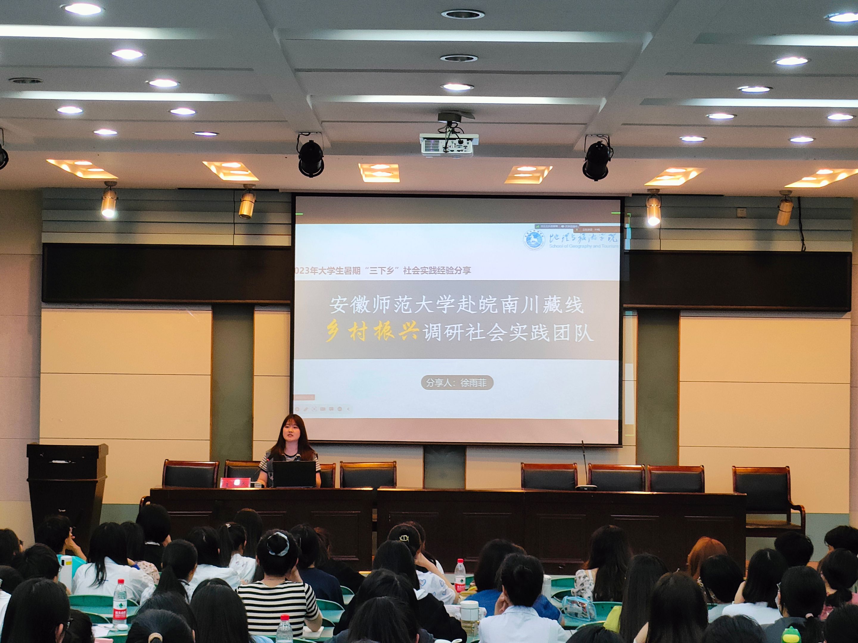 随后,2020级旅游管理专业徐雨菲向大家分享自身参加暑期社会实践的经验心得。她从选题角度、调研过程和成果总结等方面总结了社会实践团队的开展过程。提醒同学们在进行社会实践过程中要注意与当地居民沟通的方式方法,在实践中体现地旅学子的素质修养。通过生动的讲述,使参会同学对社会实践有了更深入更全面的了解。