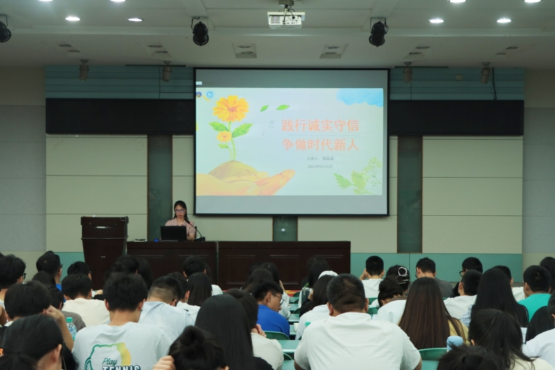 开展诚信警示教育,增强诚信意识。学院组织开展“践行诚实守信·争做时代新人”专题讲座。讲座内容包含诚信的价值、考试诚信、就业诚信、还贷诚信、金融知识等方面,通过违约失信等典型案例教育引导大学生要树立诚实守信的价值理念,珍视自己的信用,维护自己的征信系统,依法履行国家助学贷款合同,以诚立德、以诚促行、积极将诚信意识转化为大学生的自觉素养与行为养成。
