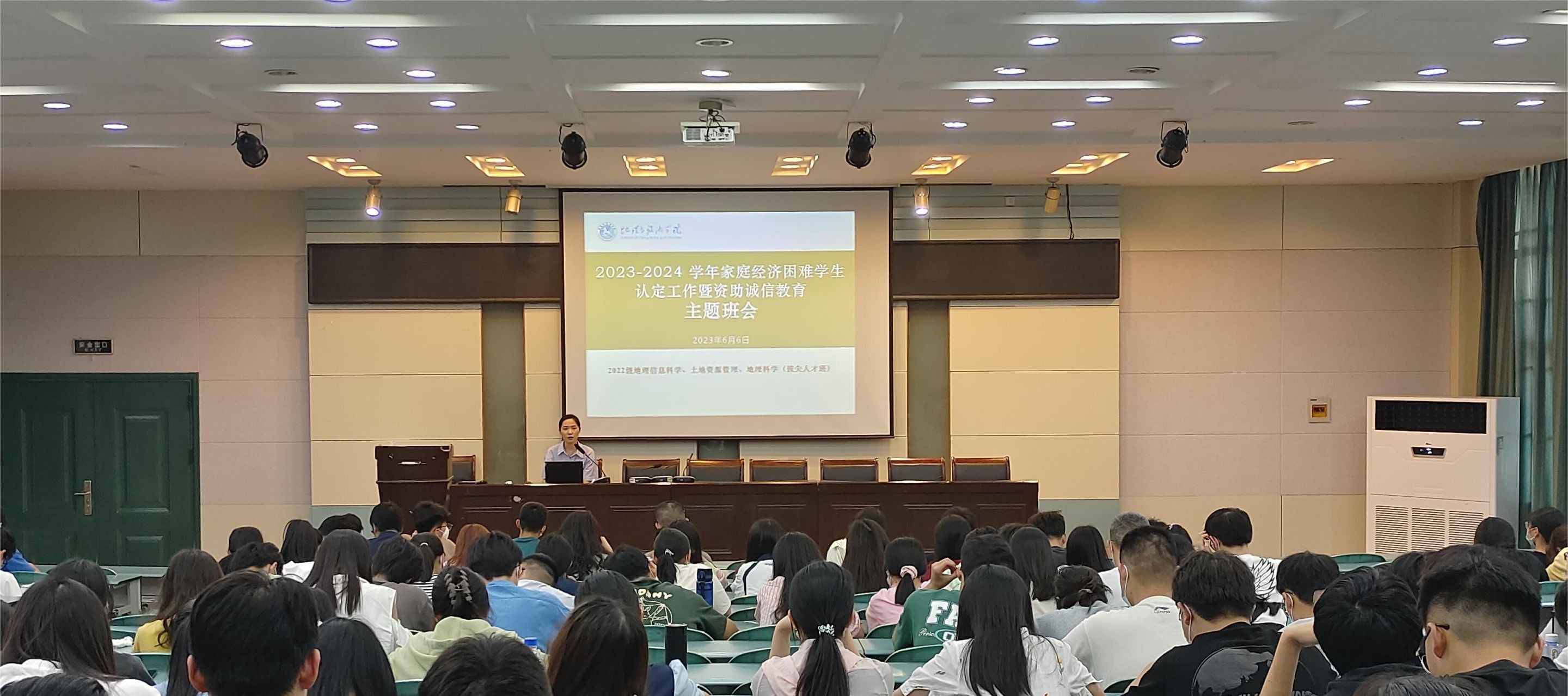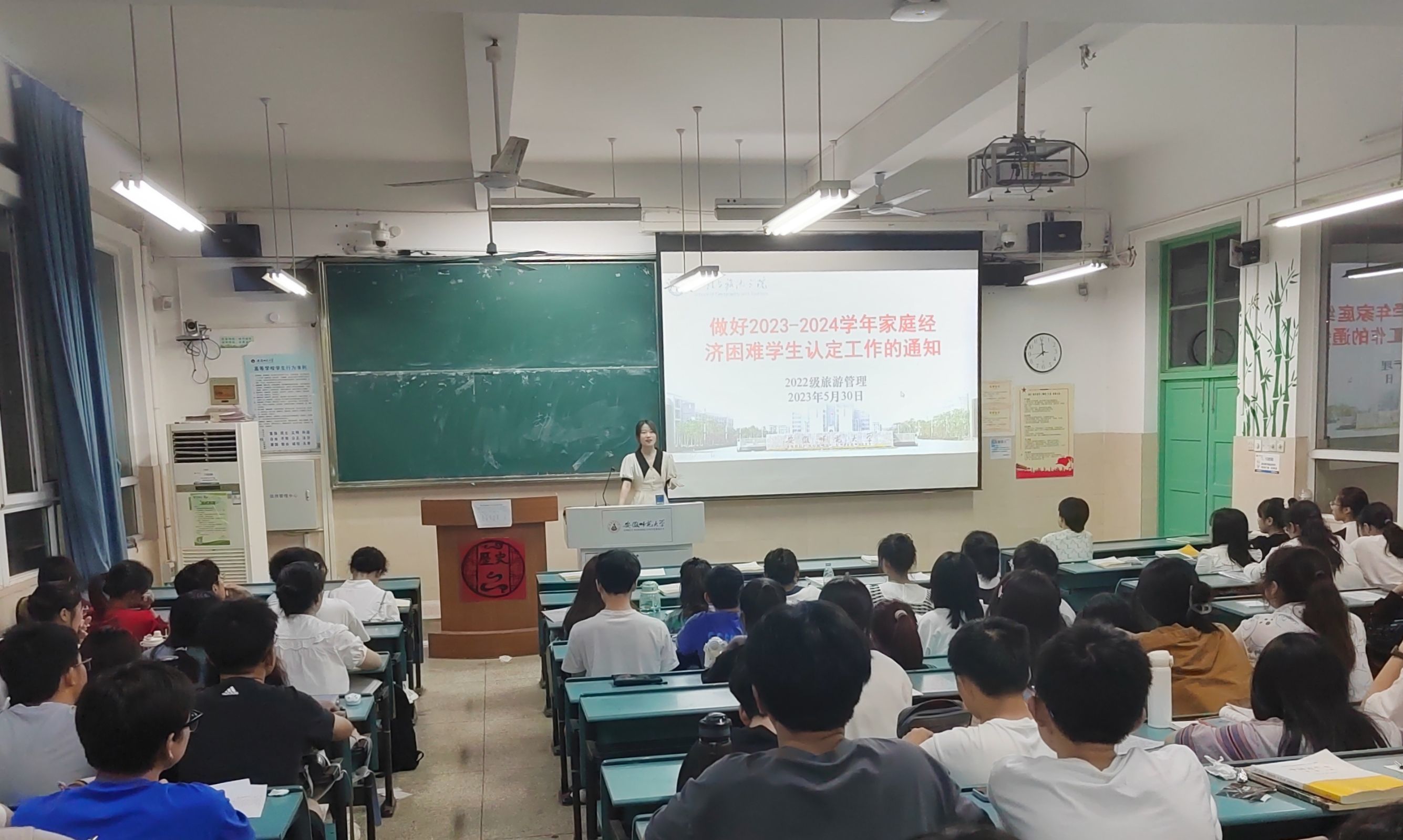 宣传资助政策体系,助力学生学业。辅导员为同学们讲解了2023-2024学年家庭经济困难学生认定工作的具体申请流程及注意事项,并详细介绍了“助学贷款”、“学费减免”、“勤工助学”、“绿色通道”等资助政策,旨在进一步宣传国家资助政策及其成效,助力广大学子顺利完成学业。