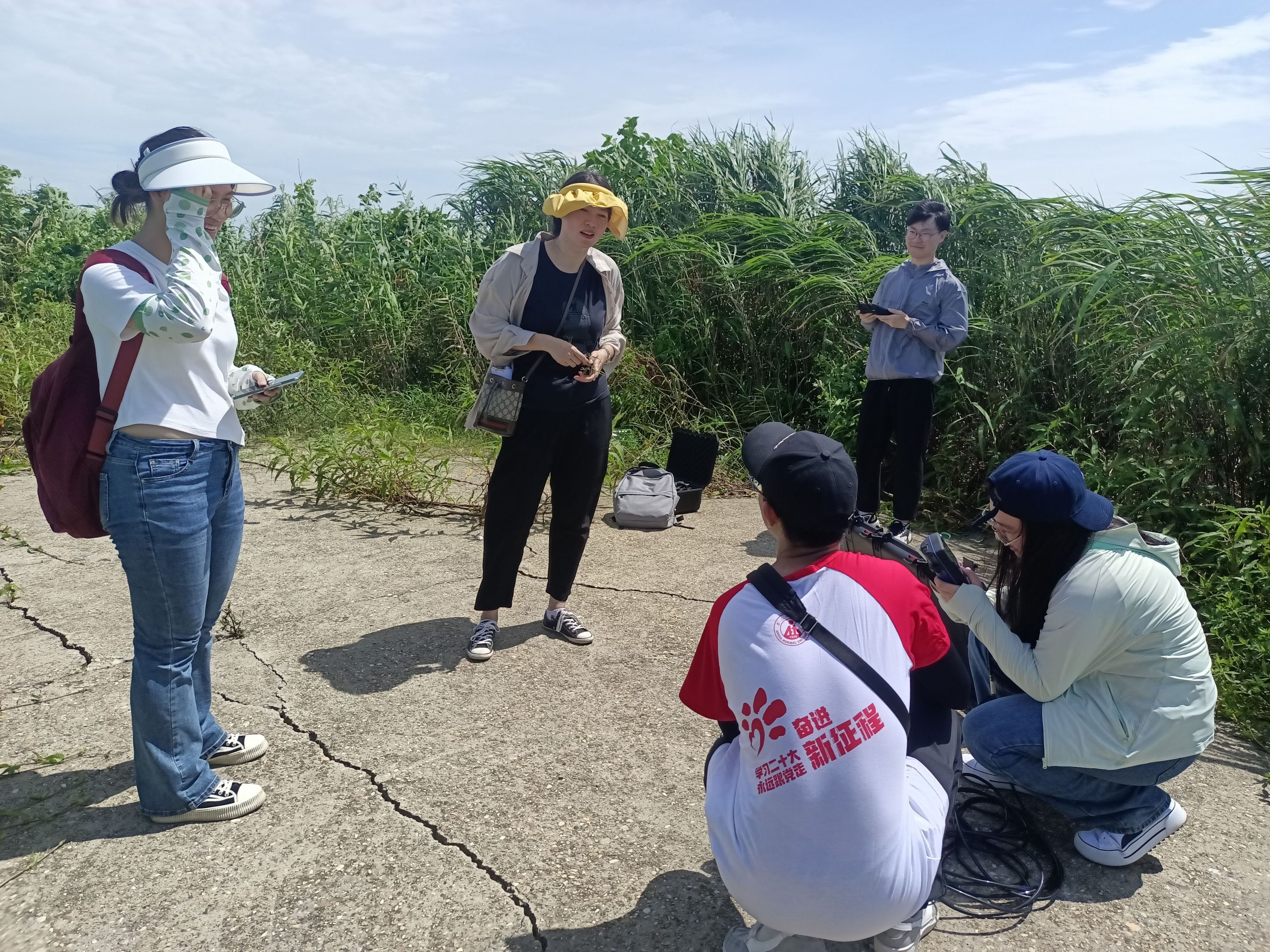 齐凌艳老师指导成员使用YSI水质检测仪对所采水样进行了叶绿素浓度等数据的测定与记录。随后,根据老师的耐心指导,成员们运用无人机设备对自然保护区内的湖泊等水体拍摄多光谱图像。