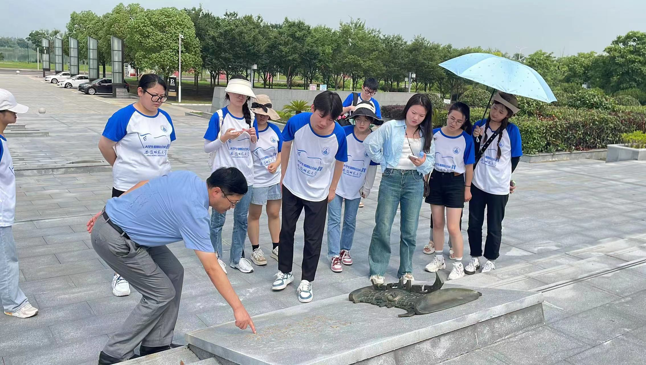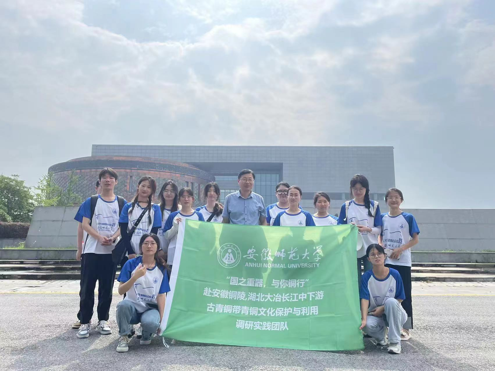 杨效忠教授协同与你“铜”行赴安徽铜陵、湖北大冶暑期社会实践团队全体成员到达铜陵市博物馆,探寻五大铜都之一——铜陵,以当地青铜记忆为抓手开展调研活动,感受中华文明的多样性和丰富性,实地调研青铜文化,为当代青铜旅游活化寻找方案。