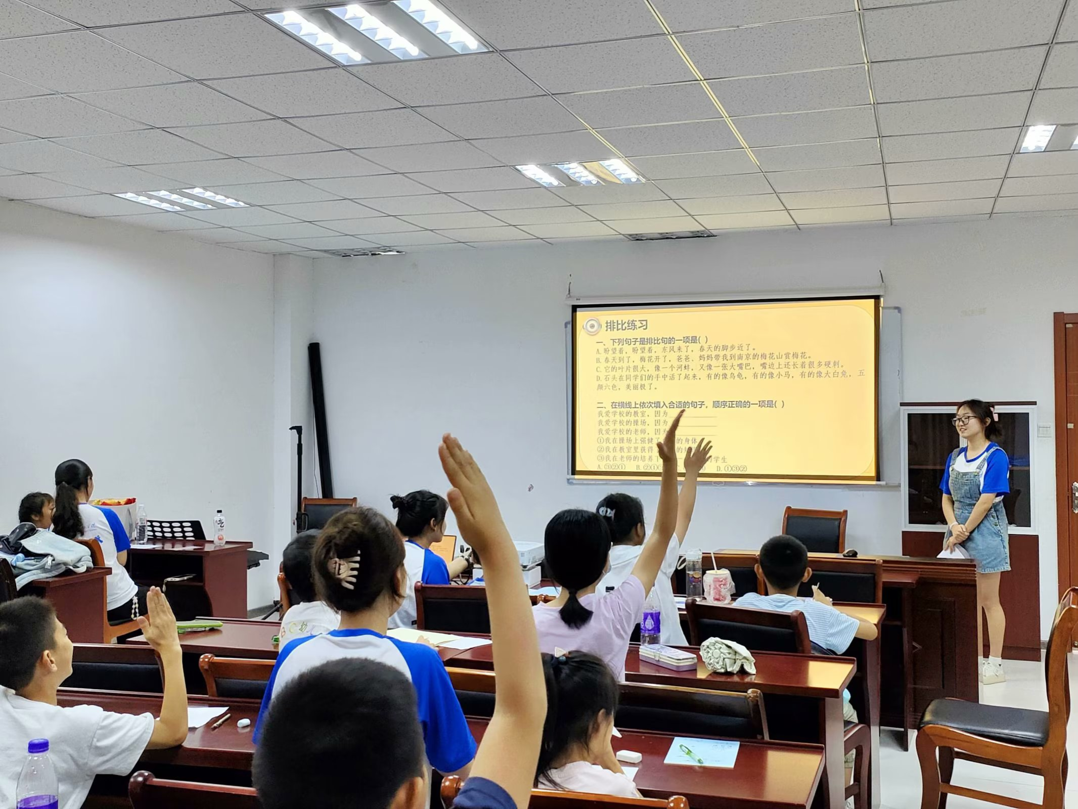 下午,支教团成员张思凡以修辞手法“排比”为主题进行授课。结合丰富的理论知识讲解,张思凡以“开火车”等答题方式展开了一系列活动包括知识竞答,寓教于乐,极大调动了小朋友们的积极性。