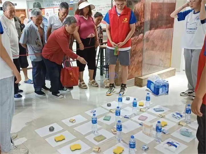 凉风怡人,尊老情深。每位参与此次讲座的老人,都获得了一把团队赠送的夏日清凉小蒲扇。在蒲扇微风下,团队带领老人开展了充满童趣的套圈活动。“家有一老,如有一小”这项小游戏以一种特殊的陪伴方式给老人们带来了乐趣。