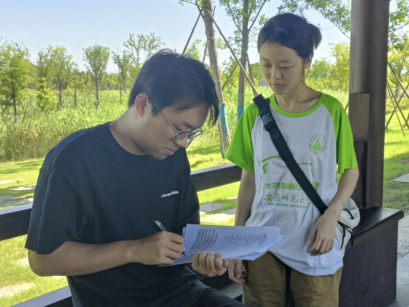 赴阜阳市颍州西湖文旅融合调研团队(以下简称“调研团队”)在颍州西湖景区内展开了名为“颍州西湖游客调查”的问卷调研工作。走进颍州西湖,这片著名的湖泊风景区,团队成员通过问卷调研、实地访谈,探索传统诗歌是如何与现代文旅产业相融合,为景区发展注入新的活力。