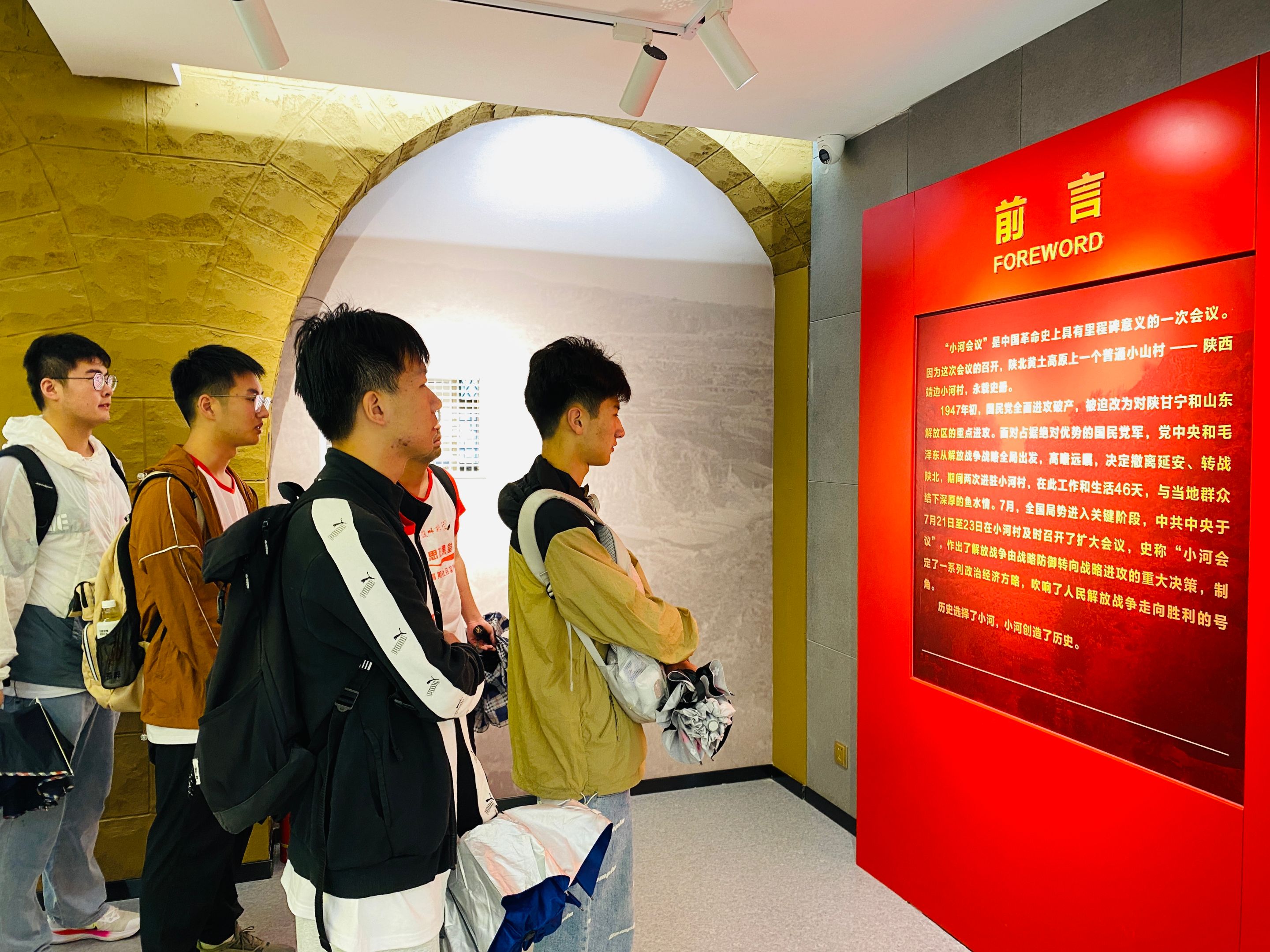 百年记忆,红色历程。小河会议是解放战争处于转折关头的一次重要会议,见证了中国共产党的正确领导和人民群众的英勇奋战。下午,团队来到小河会议纪念馆,栩栩如生的蜡像生动地呈现出当时的会议情景和作战情景,充满着情深意境的交错,使人回忆起那段艰苦的抗战时光,深刻体会到当时革命工作的艰辛。怀着敬仰的心情走进毛泽东的旧居,映入眼帘的是毛主席坐在窑洞里,他的坚定眼神奠定了革命征程的伟大胜利,周围摆放着十分整洁的古旧桌椅,还有一些朴素的生活用具。门外的那一棵杏树,也颇有历史渊源,是毛主席吃了村民的甜杏,为了感谢村民的热情亲手种植的。当地老百姓为了纪念和缅怀主席,又在原地栽种了一颗杏树。