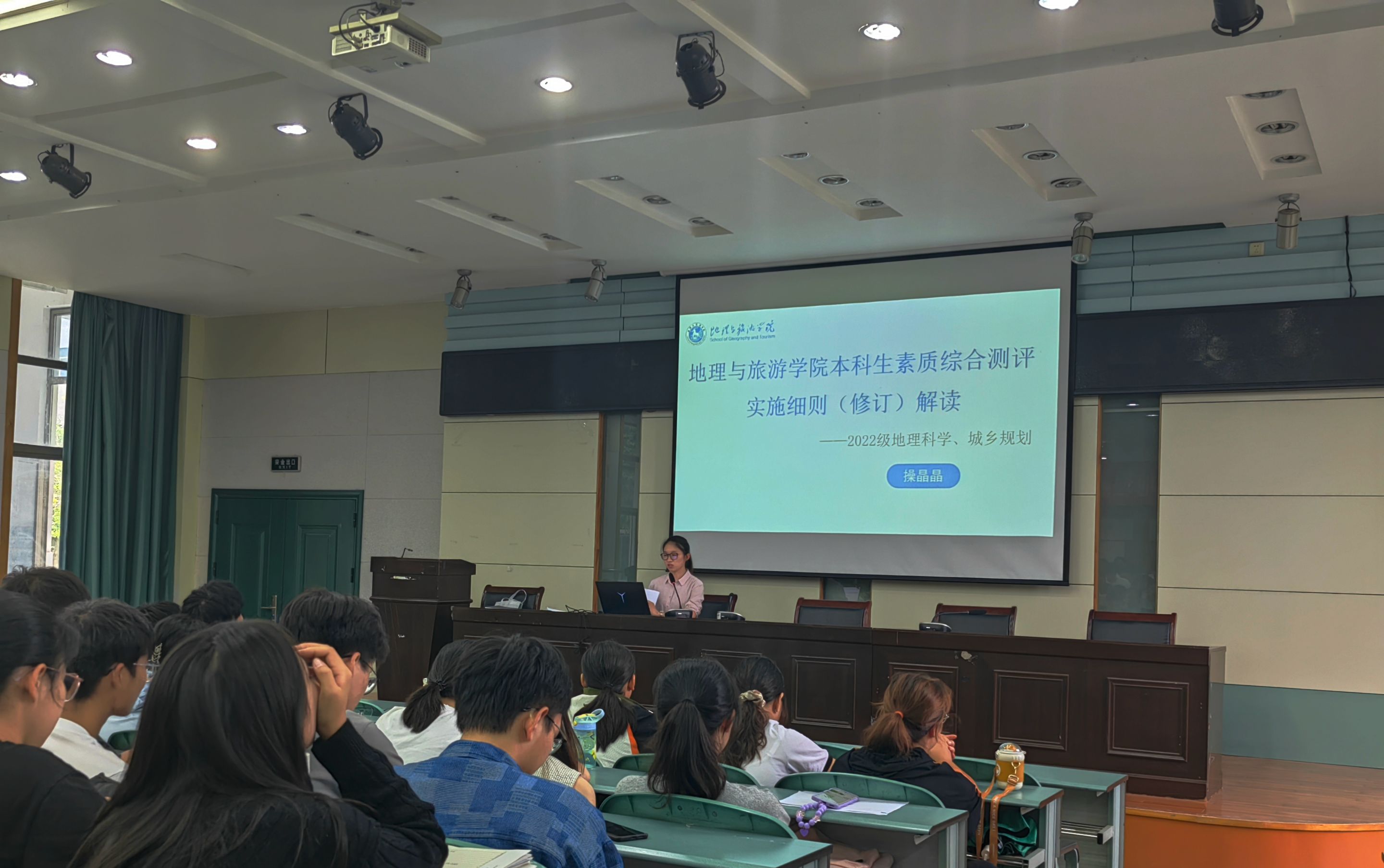 本网讯(施懿莹 操晶晶)8月30日下午,2022级城乡规划、地理科学(师范)专业于实验楼101报告厅召开“青春无限好,奋斗正当时”暨“开学第一课”主题班会。本次班会由辅导员操晶晶主持,全体同学参加。