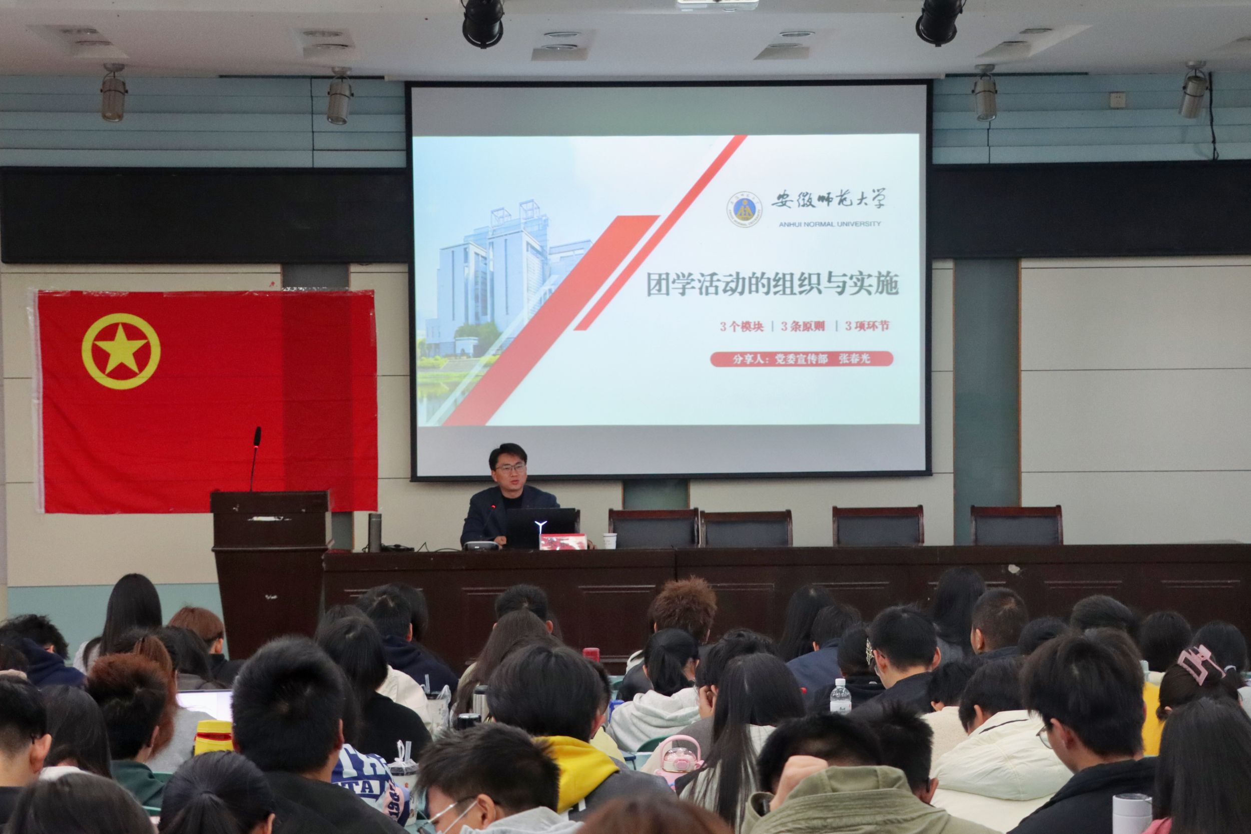 校党委宣传部思想教育科科长张春光讲授《团学活动的组织和策划》专题课程。他围绕团学活动的宗旨与功能、困境与出路、组织与实践展开教学,并联系学生特点,融入个人经验,为学生骨干提供一场非常有指导性的培训。