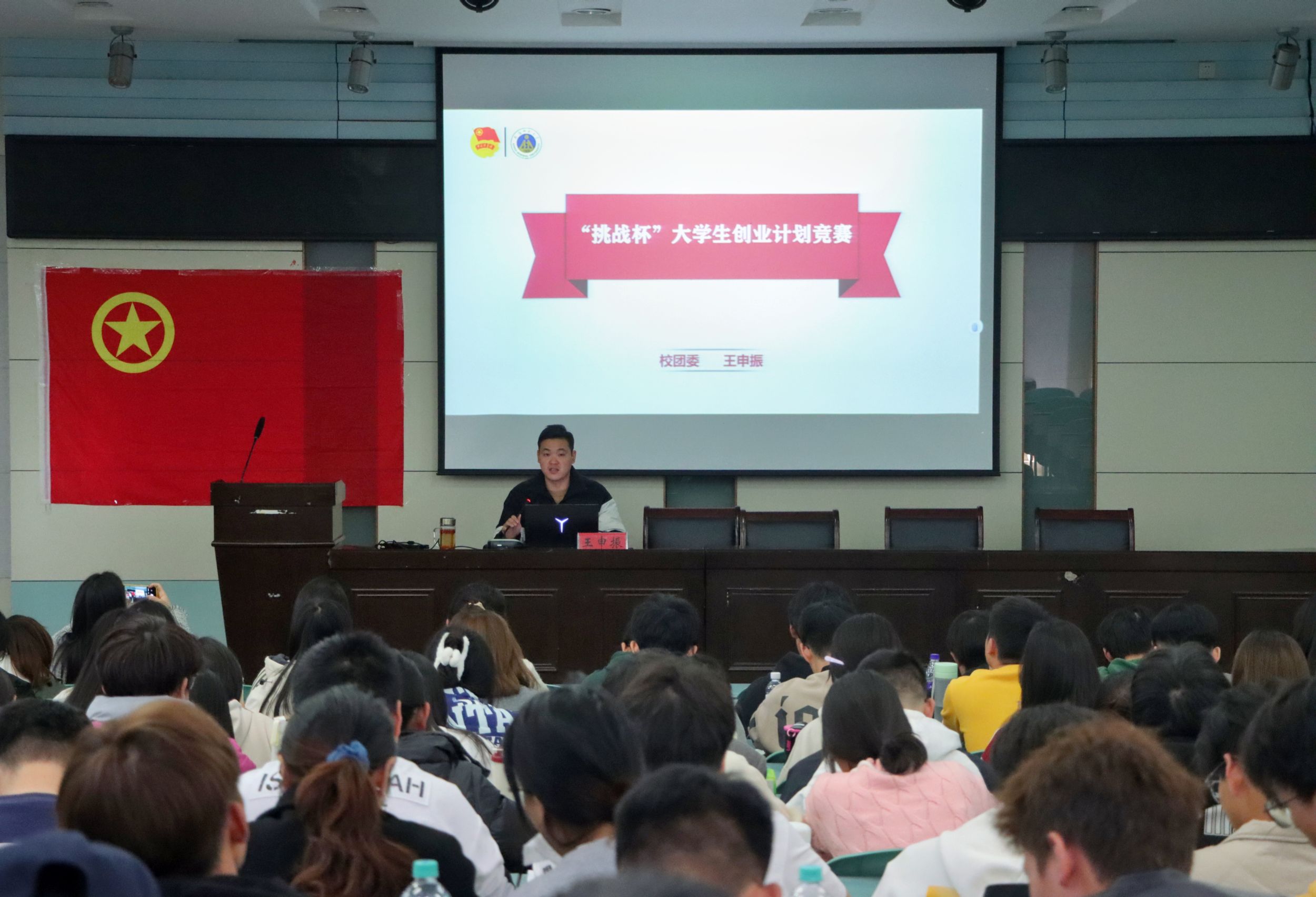 校团委素拓部部长王申振作了题为《以学科竞赛促专业能力提升》的讲座。他以“挑战杯”大学生创业计划竞赛项目为着力点,向在场学生细致讲解了赛道设置、项目选题、参赛材料等内容,结合以往国奖案例,给出了具体的指导。