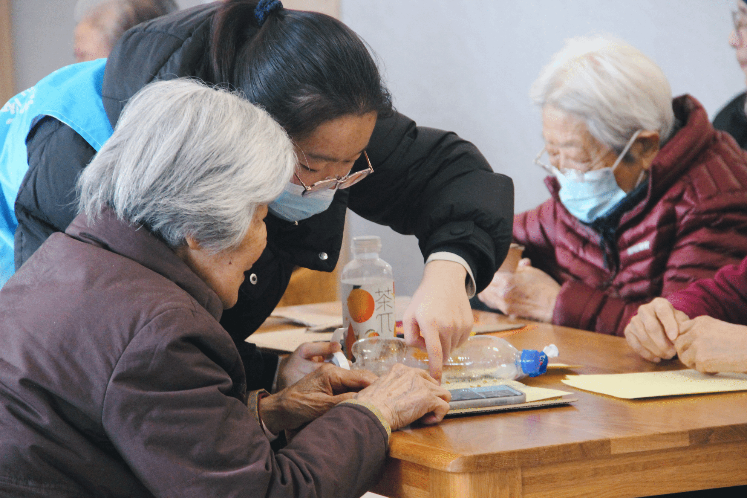 敬老志愿活动于海螺颐养院举办。12月17日下午,夏元昊,魏思雨,张博文三位志愿者向爷爷奶奶宣讲有关环保的知识,积极响应习近平总书记“绿水青山就是金山银山”的时代号召,呼吁大家共同为环保做出贡献。宣讲结束后,志愿者们拿出收集好的“废品”,引导爷爷奶奶开展关于“废物利用”的手工活动。在活动中,爷爷奶奶们脸上洋溢着灿烂的笑容,对环保公益的活动开展给予极大的肯定与支持。临走前,老人们表示:做好环保工作,老百姓们最能受益,也最有发言权。